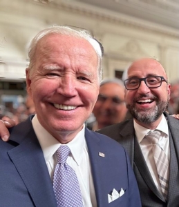 قلت لبايدن بدي سيلفي و البيت الابيض خلفي، فاخذ تلفوني و هو عمل السيلفي عشان هيك راسه مبين كبير .