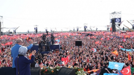 على غرار منافسه كمال كيليتشدار أوغلو، عقد أردوغان في نهاية الأسبوع الأخير من الحملة تجمعا حاشدا في العاصمة الاقتصادية للبلاد التي ترأس بلديتها من 1994 إلى 1998