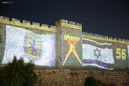 استفزاز لمشاعر الفلسطنيين .. إضاءَة علم الاِحتلال على أسوار القُدس القديمة.