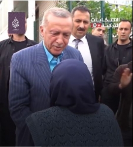 طلب منها الدعاء .. الرئيس التركي رجب طيب أردوغان يزور جارته (85 عامًا) ليلة جولة الإعادة