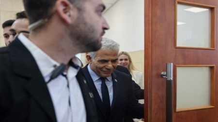 زعيم المعارضة الإسرائيلية يائير لابيد يشهد ضد نتنياهو بتهم الفساد في المحكمة