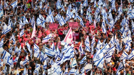ومنذ الإعلان عن الخطة في مطلع كانون الثاني، يتظاهر عشرات آلاف الإسرائيليين أسبوعيا للتنديد بالنص والحكومة التي شكّلها نتنياهو في كانون الأول.
