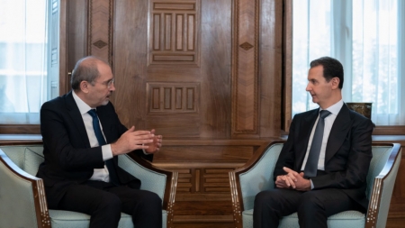 التقى نائب رئيس الوزراء وزير الخارجية وشؤون المغتربين، أيمن الصفدي، الاثنين، الرئيس السوري بشار الأسد في دمشق، وبحثا "ملف عودة اللاجئين السوريين والعلاقات الثنائية" بين البلدين، بحسب وكالة الأنباء السورية "سانا".