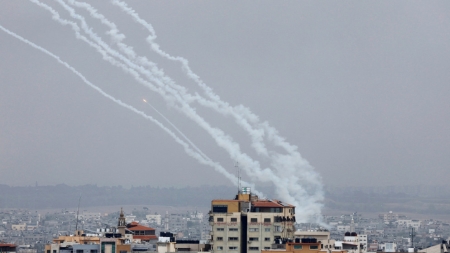 رشقة صاروخية فلسطينية نحو القدس المحتلة رداً على قصف البيوت المدنية في غزة