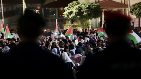 في عمّان، نفذ المئات، مساء الاثنين، أمام ساحة مجاورة لمسجد الكالوتي في الرابية التي تضم مبنى السفارة الإسرائيلية وقفة تضامنية دعما للشعب الفلسطيني والمقاومة في قطاع غزة.