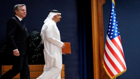 ولم يرد وزير الخارجية الأميركي أتوني بلينكن الذي يزور قطر بشكل مباشر على سؤال حول هل طلبت واشنطن من الدوحة إغلاق مكتب سياسي لحماس في الدوحة، لكنه قال ردا على ذلك إن كل الدول "بحاجة إلى التنديد" بحماس لهجومها على بلدات إسرائيلية والذي أسفر عن مقتل 1200 إسرائيلي. وكان يتحدث إلى وسائل الإعلام برفقة آل ثاني بعد اجتماعهما.