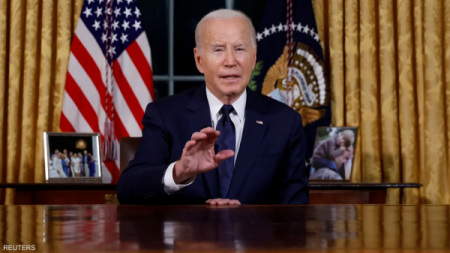 جاء خطاب بايدن بعد حوالي 20 ساعة من عودته من رحلة سريعة للاحتلال لإبداء التضامن الأميركي معها بعد الهجوم الذي شنته حماس عليها في السابع من أكتوبر.