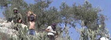 ويمثل عنف المستوطنين وخاصة في موسم قطاف الزيتون تحديا خطيرا للكثير من المزارعين الفلسطينيين. فالمستوطنون يتلفون أشجار الزيتون التابعة للفلسطينيين أو يقتلعونها أو يسممونها أو يحرقونها أو يقطفونها ويسرقون محصولها في وضح النهار بعلم وحماية قوات الاحتلال . وتحصر سلطات وقوات الاحتلال وصول المزارعين الفلسطينيين في مختلف المحافظات إلى حقول أشجار الزيتون الواقعة بالقرب من 75 مستوطنة بعدة أيام في السنة ، حيث يتم نشر جنود للجيش الاسرائيلي في المناطق المحاذية بحجة حماية اصحاب حقول الزيتون وتأمين وصولهم الى اراضيهم ولكن في واقع الأمر لا توجد لهؤلاء المواطنين أية حماية من عنف المستوطنين . " نظام الحماية ، الذي تدعي سلطات الاحتلال إقامته ثبت بالدليل القاطع وحسب شهادات منظمات دولية بأنه نظام حماية وهمي وبأنه نظام غير فعّال في منع تخريب أشجار الزيتون على ايدي المستوطنين . هذا النظام المفروض يعاقب المزارعين من خلال تقييد وصولهم بدلا من فرض حكم القانون على المستوطنين الذين ينفذون أعمال العنف ، إذ أن معظم الشكاوى التي تقدم للشرطة الاسرائيلية بشأن هجمات المستوطنين ضد المزارعين الفلسطينيين وممتلكاتهم عادة ما يتمّ اغلاقها دون تقديم لائحة اتهام ضد أحد