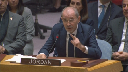 وأوضح الصفدي خلال كلمة له في جلسة لمجلس الأمن الدولي بشأن القضية الفلسطينية، أن إسرائيل تبني المستوطنات في الضفة الغربية المحتلة في "خرق واضح للقانون الدولي من دون رد، وتصادر أراضي فلسطين دون مساءلة، تطرد المقدسيين من بيوتهم من دون حساب، تقتل حق شعوب المنطقة في السلام من دون اكتراث".