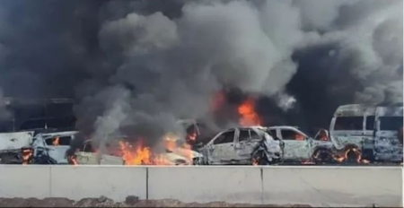 وتلقى اللواء محمود هويدي، مدير أمن البحيرة، إخطارا بالحادث، وكشفت التحريات، أنه أثناء سير سيارة على الطريق الصحراوي، على بعد نحو 132 كيلومترا شمالي العاصمة القاهرة، حدث تسرب للزيت، أدى بعدها إلى تصادم عدد كبير من السيارات، واشتعال النيران بعدد منها.