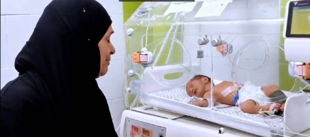 أمك وأبوك ماتوا يا حبيبي".. هكذا خاطبت الجدة الطفل الرضيع هاني قشطة خلال وجوده في الخداج. هاني سمي على اسم والده الشهيد، وأنجبته والدته أثناء إصابتها الحرجة ثم ارتقت شهيدة بعد قصف صهيوني في رفح؛ واستلمه جده وجدته وعمته اليوم بعد مكوثه أسبوع في الحضانة.