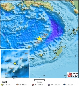 وتم تسجيل الهزة قرابة ظهر اليوم بالتوقيت العالمي على بعد 341 كيلومترا جنوب شرق مدينة أمبون الإندونيسية. وكان مركز الزلزال على عمق 10 كيلومترات، ولم تصدر السلطات الإندونيسية على إثره أي تحذير من موجات تسونامي.