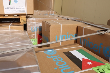الراي نيوز- وصلت إلى مطار العريش اليوم طائرة مساعدات لغزة أرسلتها الهيئة الخيرية الأردنية الهاشمية محملة بالألبسة بالتعاون مع منظمة الأمم المتحدة للطفولة "اليونيسف". وتم تسليم المساعدات في مطار العريش ليتم ادخالها عبر معبر رفح.