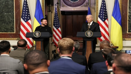 وشدّد بايدن خلال اجتماعه مع نظيره الأوكراني في البيت الأبيض على "وجوب أن يقرّ الكونغرس تمديداً (للمساعدات) لأوكرانيا"، معتبراً أنّ عدم القيام بذلك سيكون بمثابة "هدية عيد الميلاد" لبوتين.