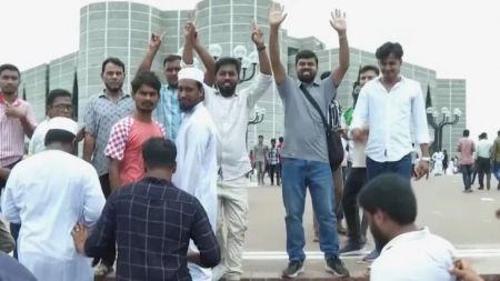 الآلاف يتوافدون إلى ساحة البرلمان احتفاء بمغادرة رئيسة وزراء بنغلاديش