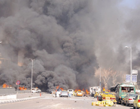 فيما صنف الموفد الدولي الاخضر الابراهيمي التفجير غير المسبوق الذي شهدته دمشق الخميس
