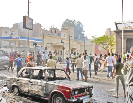 أعقب ذلك اشتباكات واسعة في الشوارع المقابلة للكاتدرائية مع مسلمين استخدمت فيها الحجارة