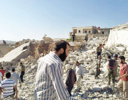 والمدفعية التابعة للقوات النظامية. وقال المرصد ان الطيران قصف مرات عدة «مجمع القدم
