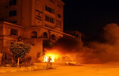 وقد اجتاح عشرات المحتجين المقر الرئيسي لجماعة الاخوان المسلمين بالقاهرة ونهبوا محتوياته اليوم الاثنين بعد أن أخلاه من كانوا به من أعضاء الجماعة في أعقاب ليلة شهدت اشتباكات سقط فيها ثمانية قتلى.