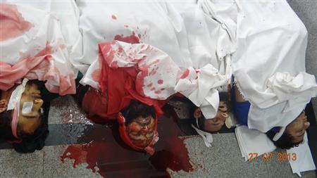 وأعلن المستشفى الميداني بميدان رابعة العدوية عن ارتفاع عدد الشهداء إلى 120 شهيدًا على الأقل، بالإضافة إلى أكثر من 3000 مصاب، معظمها بالرصاص الحي، في المجزرة البشعة التي ارتكبتها قوات الأمن ضد المعتصمين الرافضين للانقلاب العسكري عند النصب التذكاري بشارع النصر.