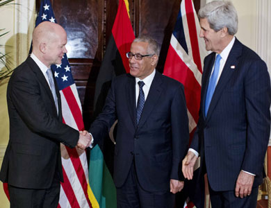 الراي نيوز- أكد وزيرا خارجية أمريكا جون كيري، وبريطانيا وليام هيغ، استعداد بلديهما لمساعدة ليبيا على تحقيق الاستقرار الذي تحتاجه، فيما جدد رئيس الوزراء الليبي علي زيدان تأكيد أهمية التعاون مع الحلفاء كي تصبح بلاده أكثر استقلالاً وإسهاماً في العالم.