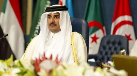 أمير قطر يتجاهل الخلاف الخليجي ويغادر القاعة