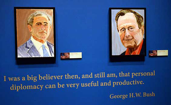 واللوحات هي جزء من المعرض الذي انطلق هذا الشهر بعنوان "فن القيادة :الدبلوماسية الخاصة للرئيس" بالمكتبة الرئاسية ومتحف الرئيس جورج دبليو بوش في مدينة دالاس بولاية تكساس الأمريكية.
