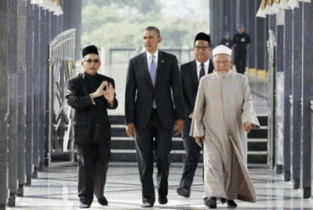 زار الرئيس الأمريكي، باراك أوباما مسجدا في كوالالمبور، اليوم الأحد، قبل لقائه مع رئيس الوزراء الماليزي، نجيب عبد الرزاق، لمناقشة التجارة والأمن وعدد من القضايا ذات الاهتمام المشترك.