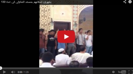 أشهر 130 شخصًا من جنسيات متعددة إسلامهم عقب صلاة الجمعة في مسجد الشاولي بمدينة جدة على الساحل الغربي للمملكة العربية السعودية.