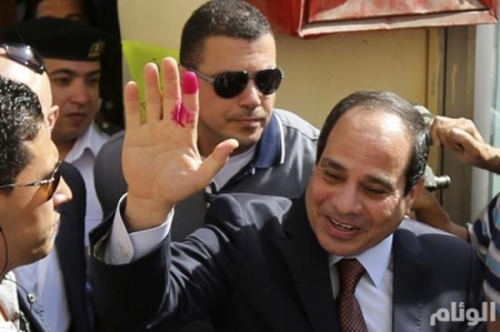 وأول أمس الثلاثاء، أعلنت اللجنة العليا للانتخابات في مصر فوز عبد الفتاح السيسي برئاسة البلاد، بعد حصوله على 96.91% من إجمالي عدد الأصوات الصحيحة في الانتخابات التي جرت الأسبوع الماضي.