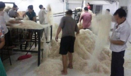 تظهر هذه الصور المسربة من مصنع للمعكرونة الصينية الطويلة عمالا قد صوروا وهم يمشون حفاة على الأغذية أو وهم ينامون على أكوام المعكرونة الصينية. وقد أدى تسريب هذه الصور إلى إغلاق المصنع.