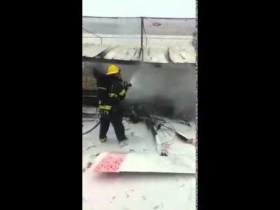 على متن الطائرة الخفيفة٬ وبعد السيطرة على النيران التي اندلعت
