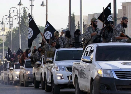 ونشرت حسابات لأنصار تنظيم "داعش" على شبكات التواصل الاجتماعي صوراً تظهر فيها عشرات العربات المكشوفة التي يعتليها مقاتلون من "داعش" ضمن عرض عسكري تم تنظيمه في مدينة الرقة مساء الإثنين.