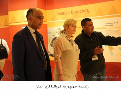 زارت رئيسة جمهورية كرواتيا كوليندا جرابار كيتاروفيتش والوفد المرافق، مساء أمس الجمعة، مدينة البترا وتجولت في مواقعها التاريخية والأثرية. وكان في استقبال فخامتها والوفد الضيف رئيس مجلس مفوضي سلطة اقليم البترا الدكتور محمد النوفلة، حيث شملت الزيارة السيق والخزنة والمدرج النبطي والمحكمة والكنيسة البيزنطية في المدينة. واستمع الوفد إلى شرح حول الأهمية التاريخية والأثرية والسياحية للمدينة، باعتبارها إحدى عجائب الدنيا السبع. كما اطلعوا خلال زيارتهم مركز زوار البترا على أهم محتويات ومرافق المركز الجديد الذي يعتبر مقصد السائح الأول خلال زيارته للموقع الأثري .