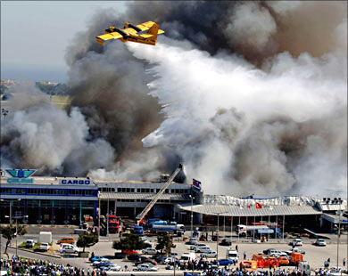 صوته مرتفع للغاية وسقط السقف. كان الوضع داخل المطار مروعاً والأضرار كبيرة'.