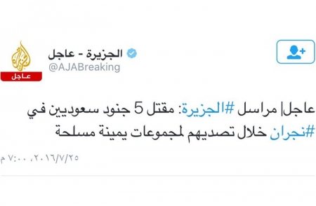 شنّ ناشطون سعوديون -عبر مواقع التواصل الاجتماعي- هجوما حادا على قناة "الجزيرة"؛ بسبب وصفها جنودا سعوديين بـ"القتلى" بدلا من "الشهداء".