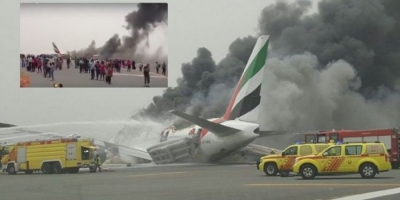 في وقت سابق، تم نشر عدة فيديوهات تعرض مشاهد احتراق الطائرة بعد اشتعال النيران فيها ووقوع انفجار. هذا وقد تم إجلاء جميع الركاب والطاقم من الطائرة، بينما لقي رجل إطفاء حتفه أثناء محاولته اخماد الحريق.