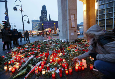 " السوق يفتح مجددا وأعاد سوق عيد الميلاد في برلين فتح أبوابه من جديد الخميس محاطا بحواجز اسمنتية بعد هجوم الشاحنة ووضعت الشموع والأزهار والأعلام بين أكواخ البيع الصغيرة إجلالا لأرواح الضحايا.