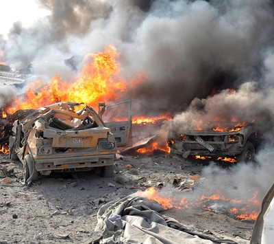 5 قتلى و 30 جريح بانفجار سيارة في مخيم الركبان على الحدود السورية الأردنية صور