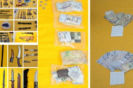 كما أسفرت العملية الأمنية عن ضبط عدد من الأسلحة الآلية، وأسلحة بيضاء ذات نوعية خطرة، بالإضافة إلى مبالغ مالية كبيرة تجاوزت (2000,000) مليوني ريال سعودي.