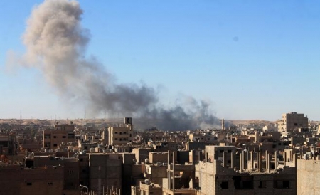وتشكل محافظة دير الزور الإستراتيجية مسرحاً لهجومين منفصلين، الاول يقوده الجيش السوري بدعم روسي على الضفة الغربية لنهر الفرات والثاني تنفذه قوات سورية الديموقراطية بدعم أميركي على الضفة الشرقية للنهر الذي يقسم المحافظة إلى قسمين.