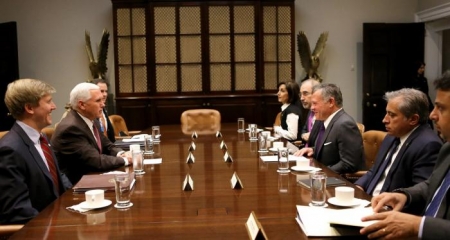 التقى جلالة الملك عبدالله الثاني، اليوم الاثنين، نائب الرئيس الأمريكي، مايك بنس، في واشنطن.
