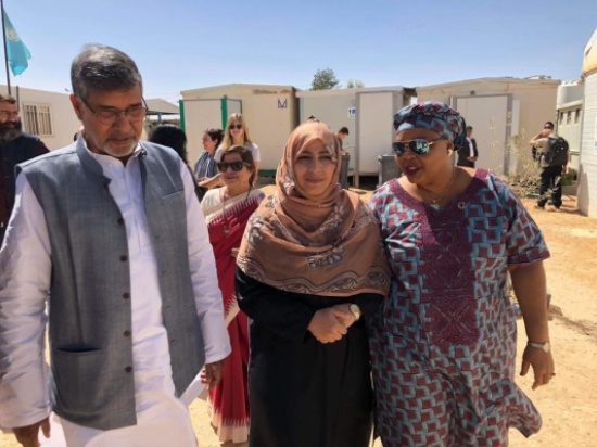زارت الصحفية اليمنية الحائزة على جائزة نوبل للسلام توكل كرمان مخيم الزعتري مع عددا من الحائزين على جائزة نوبل  اضافة الى رئيسة ايرلاندا السابقة ماري روبنسون، و كيري كندي ، وعدد من القيادات والناشطين العالميين.