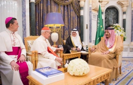 ووصل رئيس المجلس البابوي للحوار بين الأديان في دولة الفاتيكان الكاردينال جان لويس توران والوفد المرافق له إلى الرياض يوم 14 أبريل، وشملت الزيارة التاريخية لقاء مع ولي عهد السعودي الأمير محمد بن سلمان في العاصمة السعودية الرياض. (روسيا اليوم)