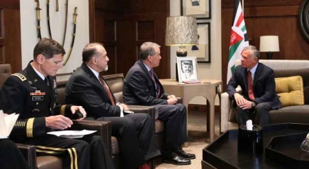 - استقبل جلالة الملك عبدالله الثاني بن الحسين اليوم الاربعاء، وكيل وزارة الدفاع الأمريكية للشؤون السياسية جون روود وقائد القيادة المركزية الأمريكية الفريق أول جوزيف فوتيل.