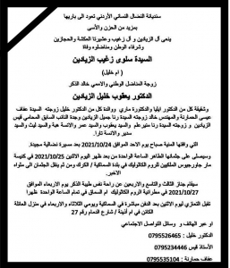جدة النائب السابق قيس زيادين في ذمة الله