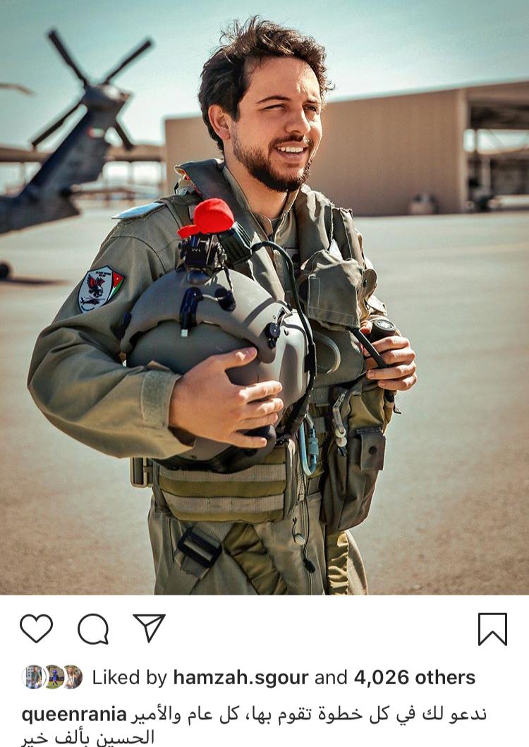 وكتبت جلالتها عبر موقع التواصل الاجتماعي 'انستغرام'، 'ندعو لك في كل خطوة تقوم بها، كل عام والأمير الحسين بألف خير'.