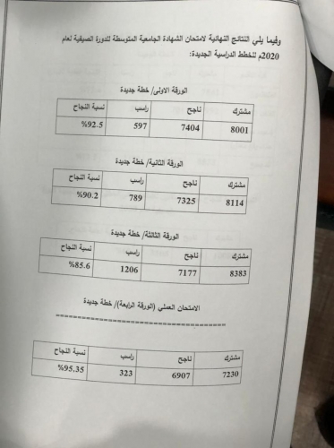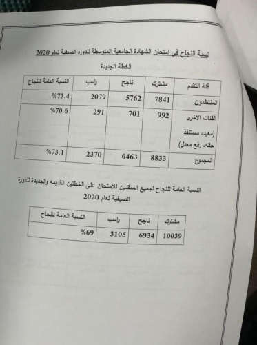 %69 نسبة النجاح العامة في امتحان الشامل (اسماء الاوائل)