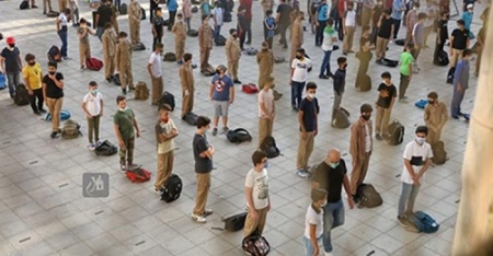 رصدت عدستنا اليوم الأول لتوجه نحو 2.145 مليون طالب الى مدارسهم بعد انقطاع طويل امتد الى 6 أشهر بسبب انتشار جائحة كورونا .