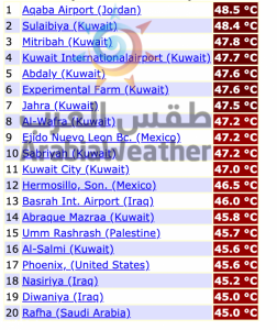 و تالياً ترتيب درجات الحرارة العظمى التي سُجلت عالمياً اليوم السبت 5/9/2020: